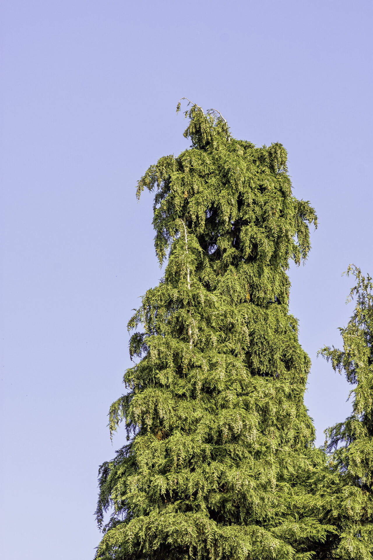 Вічнозелене дерево з густою кроною, яке зимою дає притулок птахам.