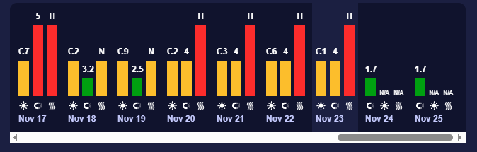 23 листопада. У неділю очікується помірна активність із К-індексом 4 — жовтий рівень. Такий рівень може викликати легкі зміни самопочуття у чутливих людей.