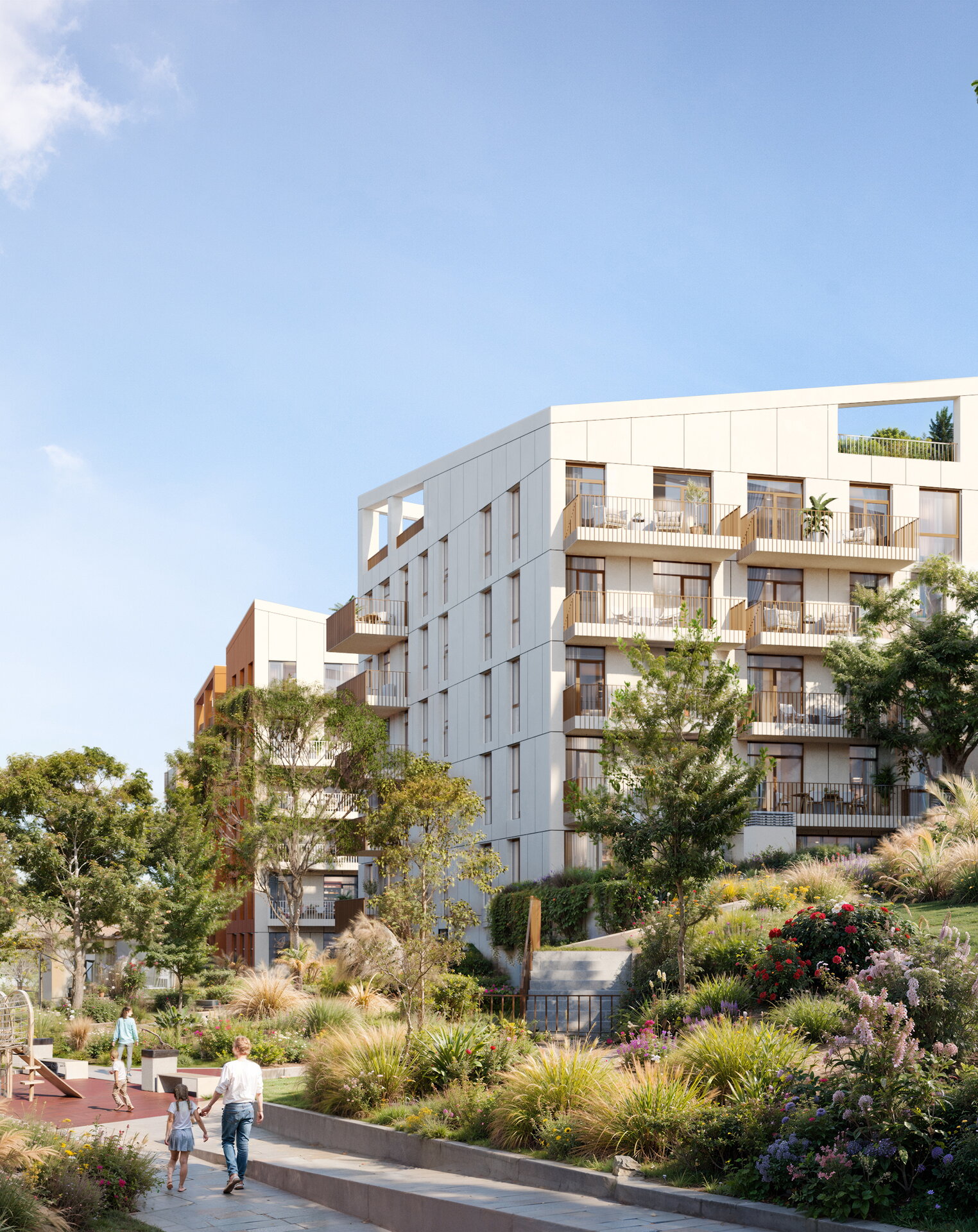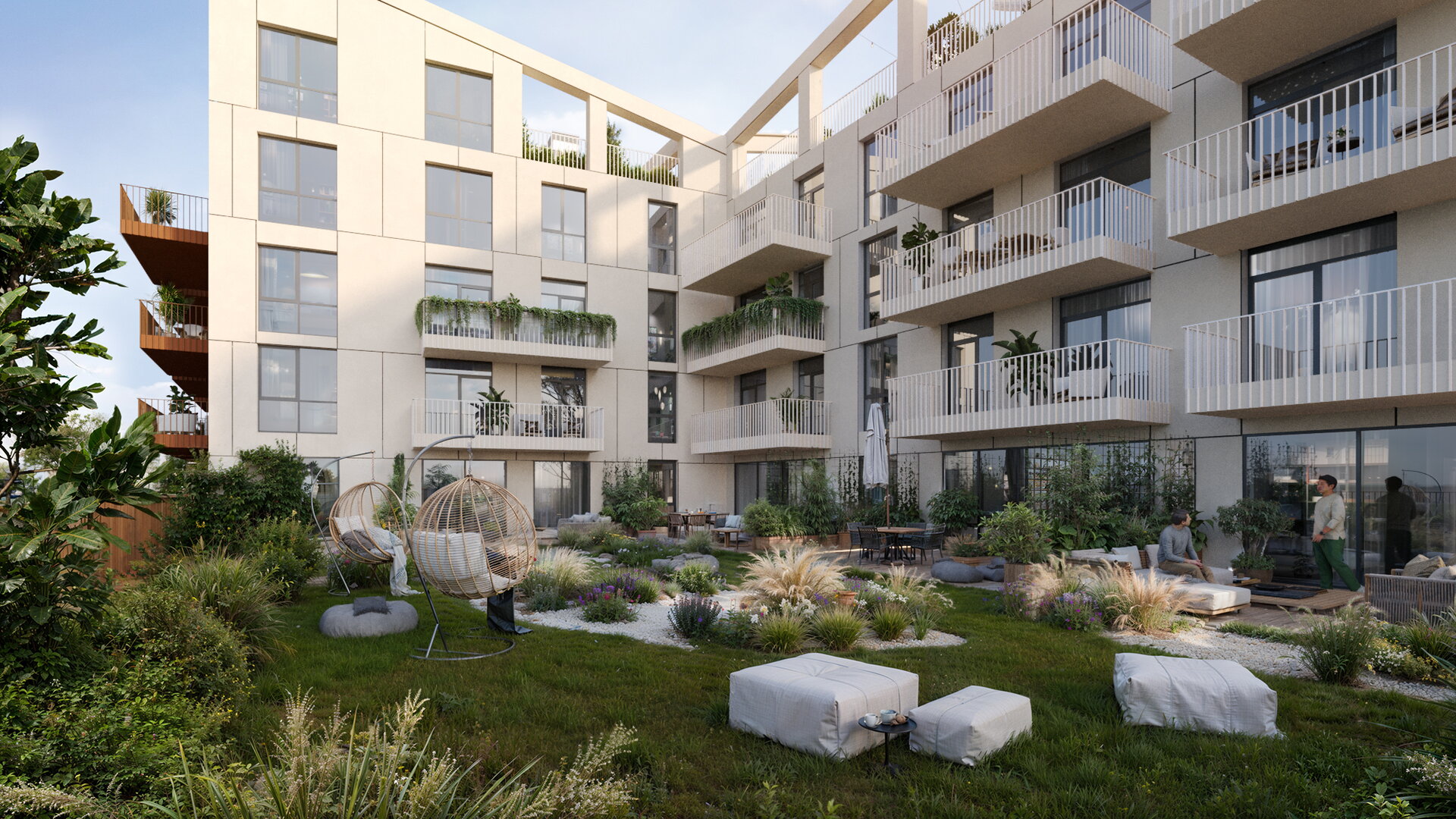 На рівні емоцій та відчуттів дана архітектура транслює спокій, камерність, преміальність та унікальність. Звивисті стежки серед зелені ведуть до компактних 5-6 поверхових житлових секцій гуманного масштабу. Їхня компоновка формує простір з 6 курдонерів та 2 кутових площ, 3 курдонери і 1 площа орієнтовані на вулицю, а інші 3 на головний пішохідний променад, що розташовується між двома чергами. Пропорції цих двориків створюють відчуття затишку та добросусідства.