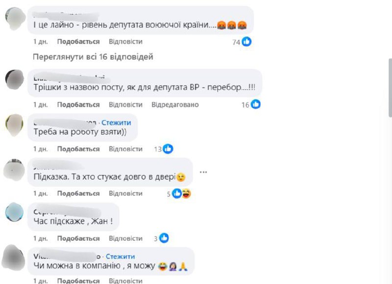 Публікація народного депутата спричинила великий резонанс, зібравши більше 800 реакцій. Коментарі були як позитивні, так і негативні.