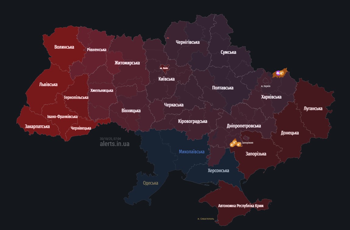 Фото: скриншот мапи повітряних тривог/alerts.in.ua